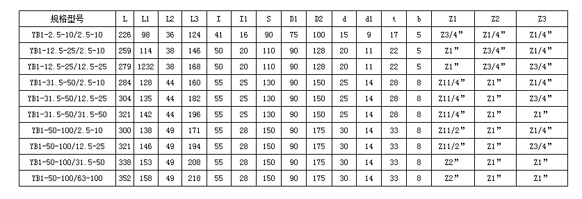 雙聯(lián)泵規(guī)格表